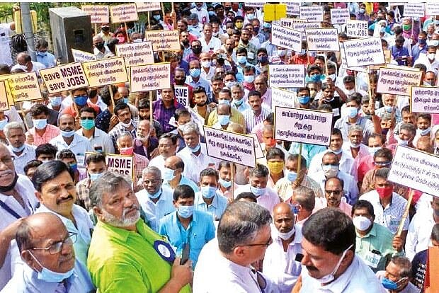 Over 50,000 MSMEs’ involved in production of spares for pumps, wet grinders and foundries downed shutters in the district. More than thousand members of around 70 associations, which have pledged their support for the protest, also staged a demonstration in front of the South Taluk office. Following the protest, the members handed over a petition to Coimbatore Collector GS Sameeran highlighting their issues.