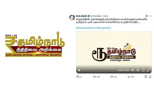 CHENNAI: The State Planning Commission and Finance Ministry contributed to the spurt in the excitement over the state budget for 2025-26, the last full-budget of the incumbent DMK regime led by Chief Minister MK Stalin, to be presented in the State Assembly on Friday, by replacing the ‘ரூ.’ (Rupee) symbol with ‘Roo’ (Tamil alphabet used widely in vernacular medium to denote Rupee) in the budget promo and documents.