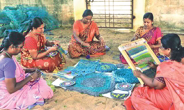 One such initiative involves ghost net recovery and reuse. In Ramanathapuram, where discarded mussel nets had caused significant marine pollution, women from fishing households are now being trained to upcycle this waste into handicrafts. “They collect the nets, clean them, and use the design like a mat to make items that resemble cosmetic accessories. It's a one-month training, and they make and sell these products,” Selvaraj explained.