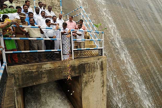Theni Collector N Venkatachalam, SP V Baskaran and Cumbum MLA STK Jakkaiyan, were present when the waters from the dams were released.