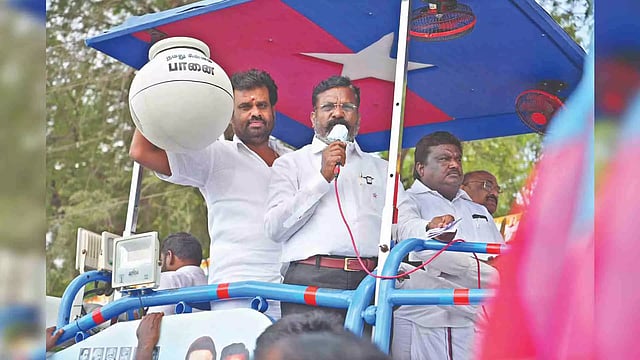 Speaking to reporters on the sidelines of campaigning in Ariyalur, which makes part of the Chidambaram (SC) constituency where he contests polls, Thirumavalavan said that the BJP has been planting seeds of communalism among the people and dividing people by religion but is not interested in protecting nation’s security, seen clearly in how the sovereignty has been surrendered to China. “Instead of throwing out China, which has encroached vast swathes of Indian territory, the BJP is saying they are going to make the country Congress and Kazhagam free. It’s a mockery,” Thiruma said.