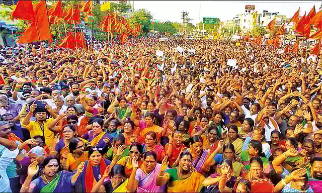 Meanwhile, in the evening, the Hindu Munnani members staged a massive protest at Palanganatham, barely hours after the Madras High Court gave its nod for the agitation to be staged between 5 and 6 pm at Palanganathan and not Thiruparankundram as originally sought by the protesters. The court had also directed the police to release all Hindu Munnani and BJP members either detained or kept under house arrest.