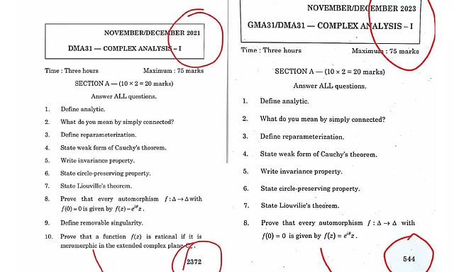 The question papers for Differential Geometry, Topology and Complex Analysis in the present semester exam and the ones issued for the December 2021 exams had only one difference – the date on top.