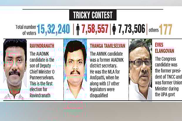 While AIADMK fielded Ravindranath, son of Deputy Chief Minister, O Panneerselvam, Dhinakaran fielded one of his key commanders Thanga Tamilselvan as AMMK candidate. He was an AIADMK powerhouse in Theni district in the past and was later dismissed along with 17 other MLAs, who stood with the Mannargudi clan.