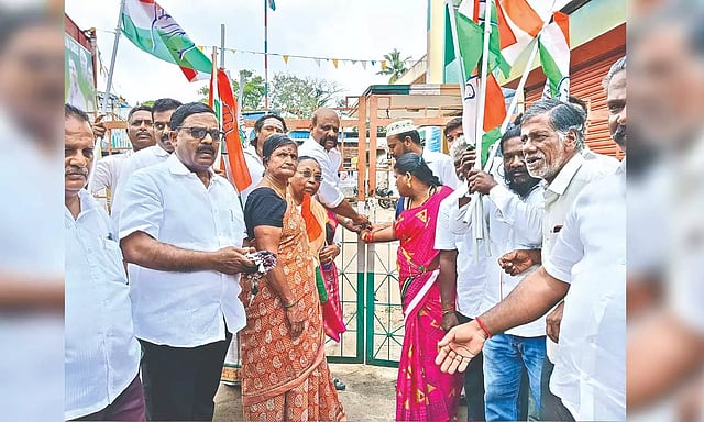 In such a backdrop, on Wednesday, a group of Congress committee members assembled in front of the Arunachala Mandran, the district headquarters and locked the office, and staged a protest. They also tore the portrait of Thirunavukkarasar and raised slogans against him. As Thirunavukkarasar was away from the office, the members who protested said that they would continue the protest on the arrival of the MP and keep up their protest till the newly appointed urban district president and other office bearers are removed and a fresh appointment made.
