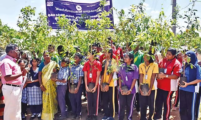 TIRUCHY: Tiruchy City Corporation planned to plant at least one lakh saplings with the support of educational institutions located in the city, residents’ welfare organisations and NGOs functioning in the City and as a part of the programme, the students planted in the KK Nagar area here on Wednesday.