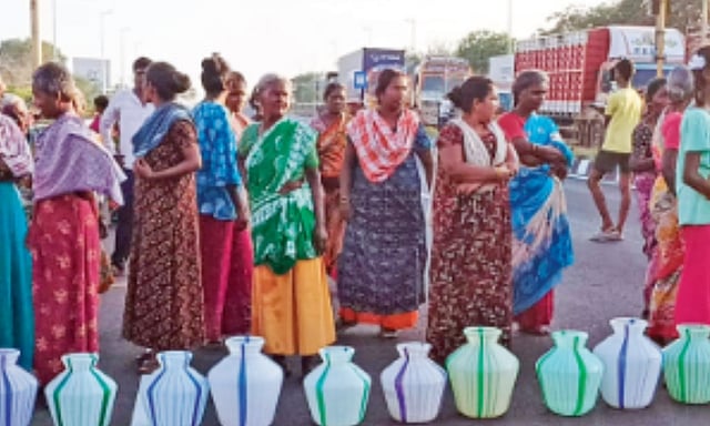 TIRUCHY: Residents of Siruganur in Tiruchy staged a protest and blocked vehicle movement in the Tiruchy-Chennai bypass on Tuesday demanding potable drinking water for which they had been fighting for more than a month.