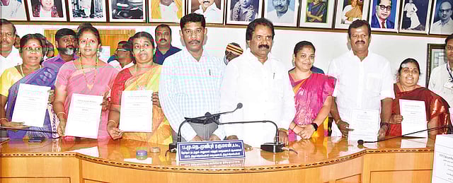 Meanwhile, in Karur Corporation, all the four DMK members were elected unopposed. Accordingly, Sakthivel for zone 1, Anbarasan for zone 2, Raja for zone 3 and Kanagaraj for zone 4 were elected unopposed. Commissioner Ravichandran distributed winning certificates and administered oaths.