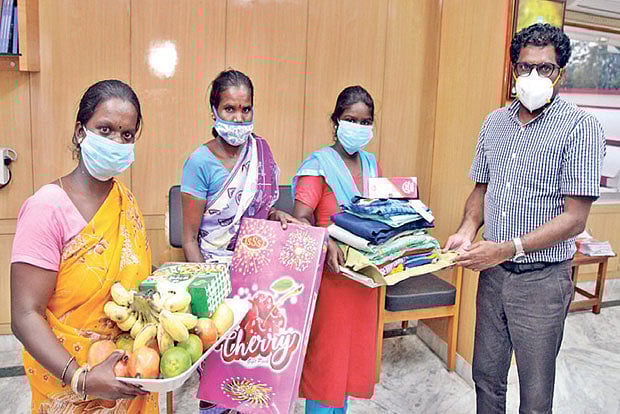 Soundarya (18) of Seriyendhal village in Tiruvannamalai taluk lived with her mother and brother in highly impoverished circumstances. She had joined I year B.Com in the Tiruvannamalai Government Arts College but found that she could not attend the online classes as she had no smart phone. She then petitioned the Collector on Monday requesting him to provide a smartphone. Kandasamy called the girl, her mother and aunt to his chambers later in the evening and handed over a Rs 7,000 worth smart phone, Rs 2,500 cash for family expenses in addition to sweets and fruits taking the beneficiaries by surprise. Thanking the Collector, Soundarya said she would do her utmost to excel in studies as a mark of gratitude to the officer.