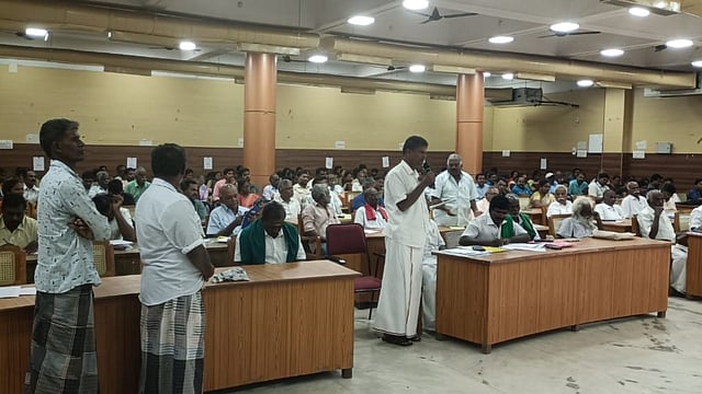 The farmers' grievances redressal meeting was chaired by the DRO R Balaji. Among the participating farmers, MP Chinnadurai raised concerns about the damage to paddy in the Tiruverumbur area by peacocks.