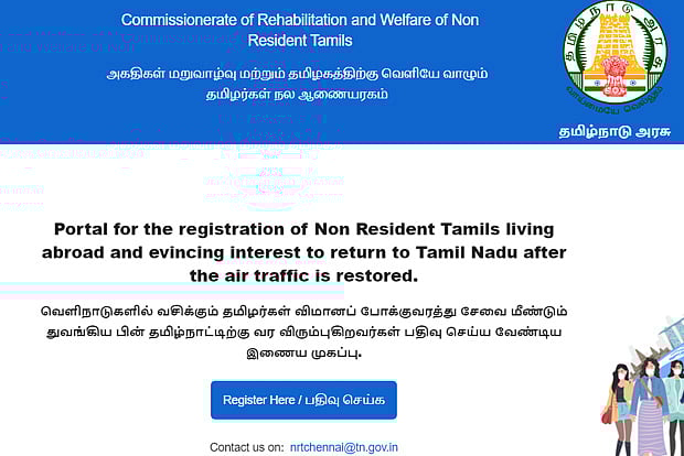 The portal www.nonresidenttamil.org would accept registration of such Tamils living abroad and who evince interest to return to Tamil Nadu once air traffic is restored.