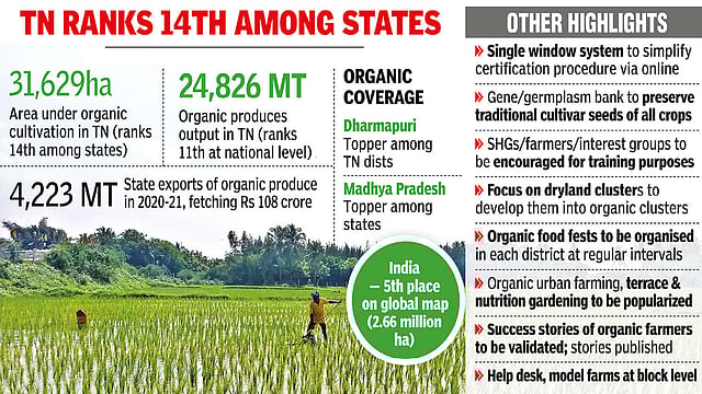 CHENNAI: The State government on Tuesday released the Tamil Nadu Organic Farming Policy 2023 to ensure food security and conserve and protect soil health, agroecology and biodiversity. Chief Minister MK Stalin released the policy in the presence of Agriculture Minister MRK Panneerselvam and Chief Secretary V Irai Anbu.