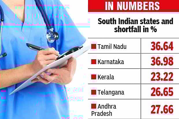 Among all the South Indian states, Tamil Nadu has the second highest percentage of shortfall in personnel with about 36.64 per cent at rural health system, after Karnataka with about 36.98. The study stated that the analysis points to increase public health spending in India to around three per cent of GDP such that the healthcare system is efficiently funded.