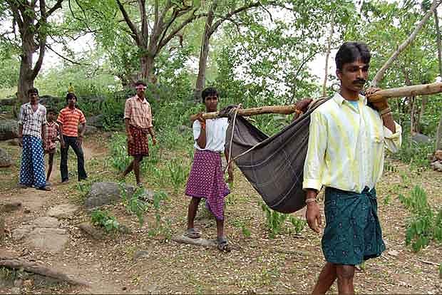 Tamila (21) wife of Karthi of Periathattankuttai village near Odugathur was brought by a “dolie” – a cloth cradle hung on a pole carried by two or more men – to the PHC at Peenjamandai where medical personnel being informed earlier arrived there with an ambulance. However, the patient developed labour pain and delivered a healthy male baby before dying a few minutes later due to excess blood loss. The grieving husband used a dolie to carry his wife’s body and the infant to his native village 8 km away.
