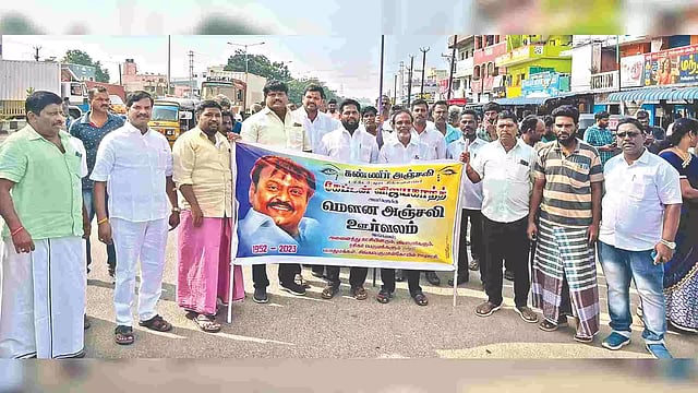 CHENGALPATTU: Following the death of DMDK politician and former actor Vijayakanth, various organisations including DMK, AIADMK, PMK, Communist party and traders associations paid tribute to the leader by sprinkling flowers and lighting candles at Bazaar Street in Chengalpattu on Saturday.
