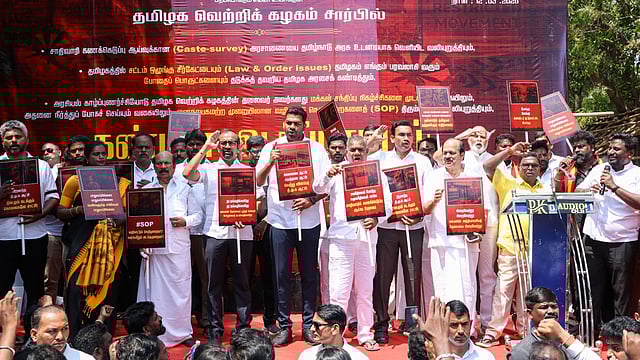 CHENNAI: The Tamilaga Vettri Kazhagam (TVK) on Thursday staged a statewide protest demanding that the Tamil Nadu government immediately issue a Government Order (GO) to conduct a caste-wise survey, while also accusing the ruling DMK of failing to maintain law and order and curb the spread of narcotics in the state.