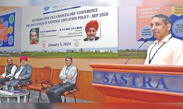 Speaking to reporters after the Southern Zone Vice Chancellors’ conference on the implementation of National Education Policy (NEP) at Sastra University in Thanjavur, the UGC Chairman Jagadesh Kumar said, Tamil Nadu is a forerunner in the field of higher education and the noted institutes in the State like Madras University, Anna University, IIT Madras, and NIT Tiruchy produce the best human resources in the country that plays a major role in industry-based development in the State. “Thus, Tamil Nadu plays a major role in Indian economic development”, he said.