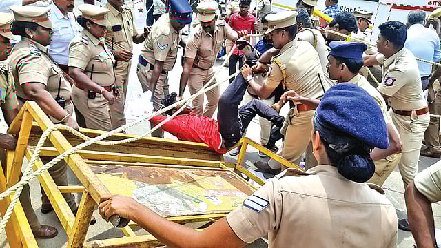TIRUCHY: Tension prevailed at Thanjavur DIG office after the student union members attempted to besiege the office on Wednesday condemning the removal of its office-bearers from the Tamil University convocation hall where Governor RN Ravi distributed degrees. Police arrested 30 members for blocking DIG office.