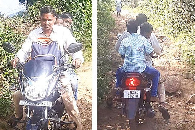 The teacher’s dedication and commitment in ensuring that children got access to education has drawn appreciation from parents, who feel confident about the safety of their wards as they are travelling to and from the school with their sir. R Velu, a resident of Puliamarathur hill village near Odugathur, around 20 km from Vellore, makes as many trips as he can daily to take the students to school, which has 50 on rolls. He has been rendering this service for the past five years after many kids started to dropout of the school as the Kudigam hill village, which is around 10 km from the foothill at Odugathur, lacked proper road access. “On seeing the huge number of absentees, I decided to arrest the dropout rate by transporting as many kids as possible to the school uphill on time on my two-wheeler,” R Velu said.