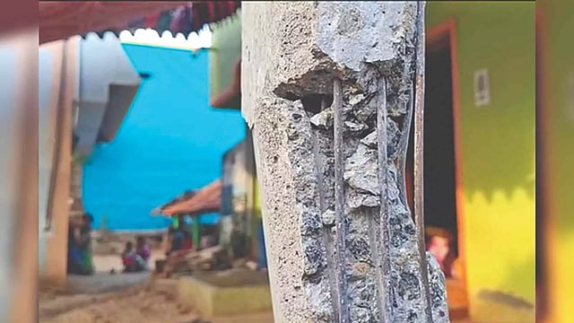 Locals had repeatedly complained about a damaged power pole on a street in Pasmarbenta as concrete in most portion had fallen. Due to this, the condition of the pole was so threatening that it could fall any time posing risk to the lives of road users.
