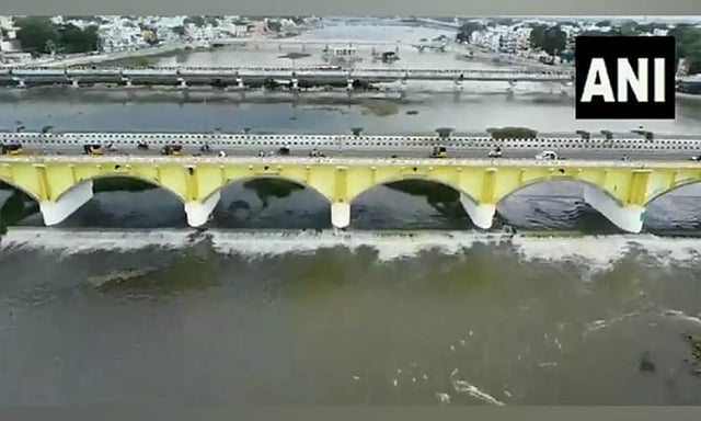 MADURAI: The water level in the Vaigai River has risen due to heavy rainfall in Tamil Nadu's Madurai district on Sunday. As the Northeast Monsoon intensified in the state, hilly areas including Varusanadu and Chathuragiri have been receiving ample rainfall for the past few days, the district administration informed.