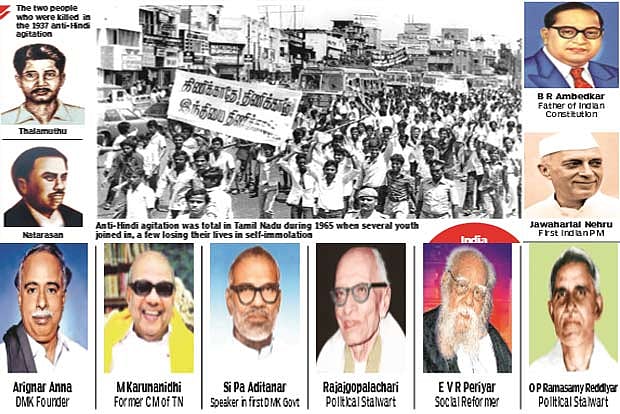 The first such agitation was launched in 1937, when C Rajagopalachari, who was the then Premier of Madras Presidency (which comprised portions of Kerala, Karnataka and Andhra Pradesh apart from Tamil Nadu) introduced Hindi learning for students of Class 6, 7 and 8 in 125 schools as a pilot project.