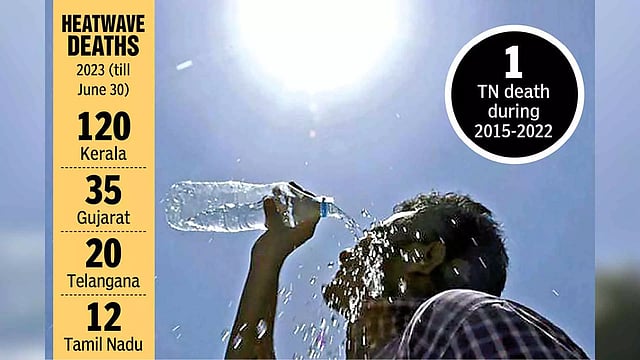 CHENNAI: The extreme temperatures witnessed in the State this summer, with mercury crossing 40 degrees Celsius on several days, has also claimed 12 lives as of June 30. This is the highest heatwave-related toll in the past nine years for Tamil Nadu, which reported only one heatwave-related death between 2015 and 2022. As per data released by Satya Pal Singh Baghel, Union Minister of State for Health and Family Welfare, in the ongoing Parliament session, a total of 13 persons died due to heatwaves in Tamil Nadu.