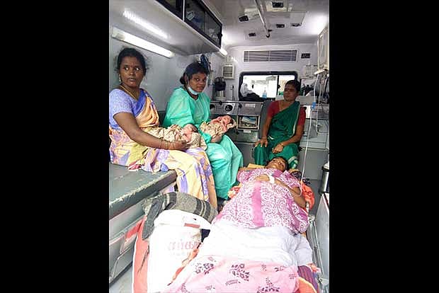 Responding to the request, driver M Saravanan and emergency medical technician (EMT) Vidhya took M Sathya (24) on board from Sathya nagar at Katpadi. While they were on their way to the Vellore government medical college hospital, the patient underwent labour pain. Soon, she was assisted