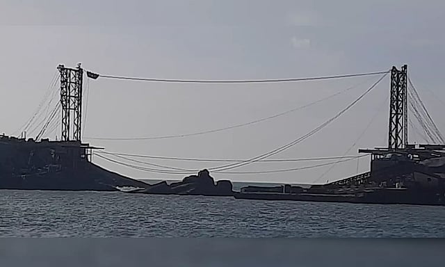 CHENNAI: Work on the glass bridge connecting the Swami Vivekananda Memorial and the Tiruvalluvar Statue in Kanyakumari is being expedited with massive ropes being erected to connect both the rocks on which the monuments are situated, according to a Daily Thanthi report.