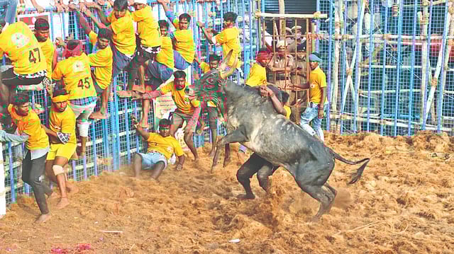 MADURAI: Every time the bull was released into the sporting arena, she pushed her tail between her hind legs and raised her ears. The milch cow, tethered to a tree, pretty close to the arena was apparently apprehensive and perhaps afraid as the bull repeatedly charged at her. Veerapandi village near Madurai city was humming, young men training hard to succeed as ace tamers in the bull taming sport Jallikattu.