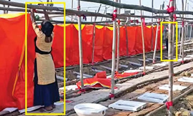 However, it was alleged that there are no partition walls between these toilets. AltNews found that the video is not from Ayodhya, but pertains to Varanasi’s Swarveda temple. The video was shot while the construction of temporary toilets was still ongoing.
