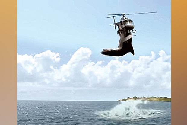 Several Twitter users have shared a 15-second clip of a giant fish leaping out of the water and attacking a helicopter. As per social media claims, National Geographic paid a million dollars for this “rare video”. Alt News performed a reverse image search on Yandex using InVid, a video verification tool, and found that the clip was extracted from the 2017 TV movie 5 Headed Shark Attack, a creature feature, so to speak.