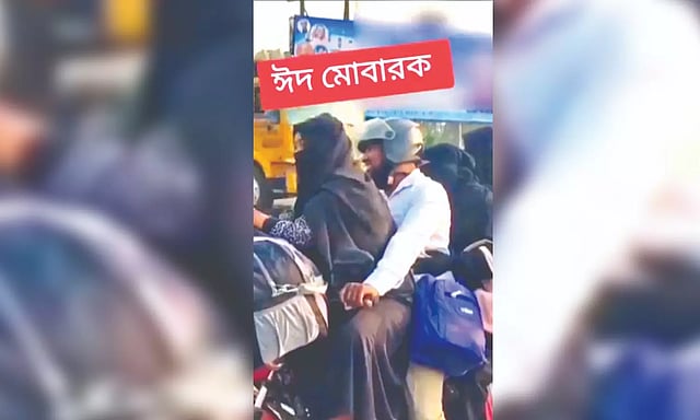 NEW DELHI: A video depicting a man riding a bike with three burqa-clad women has gone viral. The words Eid Mubarak have been superimposed on the video. Several users shared the clip claiming such are the consequences of unemployment in India.