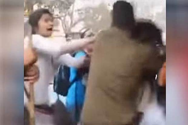 The videofeatures footage of a Delhi police attacking protesters who are claimed to befighting against the Citizenship Amendment Act (CAA).