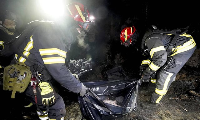 KYIV: Russian drones hit a military hospital, shopping centre, apartment blocks and other buildings in Kharkiv late Saturday, killing two people and wounding 30 others, Ukrainian officials said.