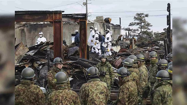 A tsunami reaching as high as about 3 meters (10 feet) spewed into coastal homes after last week's biggest quake. A fire destroyed part of Wajima city. A search began Tuesday into the remains of the fire for bodies.