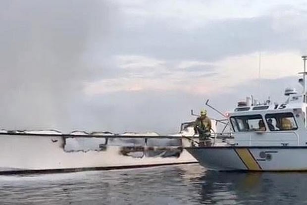 Amaral said he attached a line and pulled it into deeper water where fireboats could reach.
