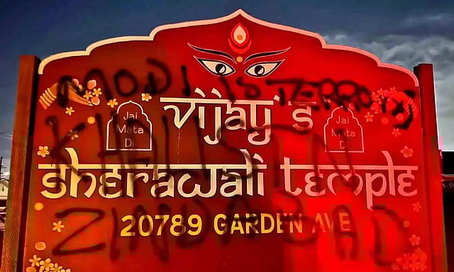 The Vijay’s Sherawali Temple in Hayward was vandalised with anti-India and pro-Khalistan graffiti, the Hindu American Foundation (HAF) said in a post on X on Friday.