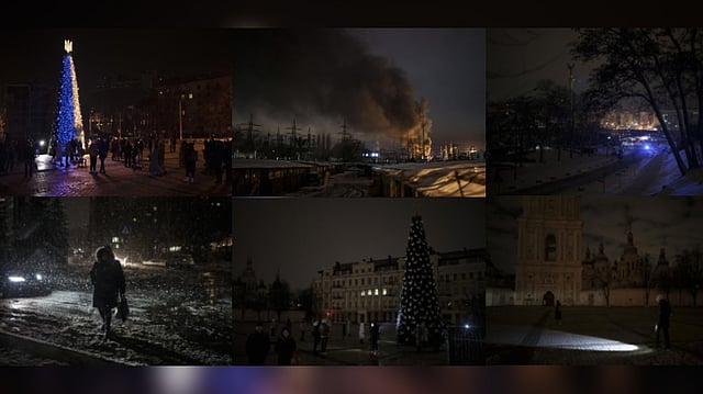 KYIV (UKRAINE): Just a year ago, Sophia Square in Kyiv was all about the big Christmas tree and thousands of lights spreading over the plaza. These final days of 2022, in the middle of a war that has ravaged the country for 10 months, a more modest tree stands there, its blue and yellow lights barely breaking the gloom of the square that is otherwise dark apart from the headlights of cars.