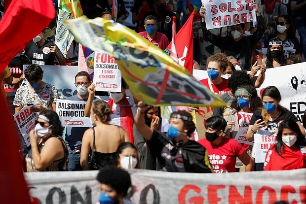 “Get out Bolsonaro, genocidal,” yelled Rio demonstrators, some of them wearing t-shirts or masks with the image of former leftist President Luiz Inacio Lula da Silva — who leads Bolsonaro in some polls.