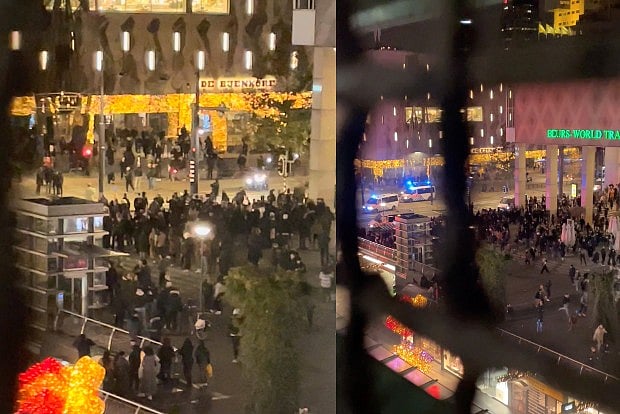 Fire and fireworks were set off by the protesters in various places on the Coolsingel street on Friday night. Police vans were also pelted with stones and a police car was set on fire. Some protesters shouted slogans like "freedom."