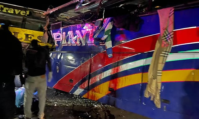 Four vehicles, including two buses, were involved in the collision, which started when a bus driver attempted to overtake and hit a lorry head-on, according to police.