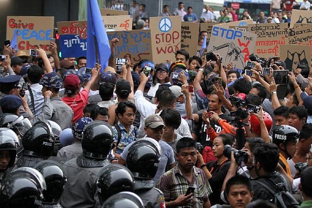 The protesters have been appealing for support from other countries and the United Nations to restore civilian rule, staging protests and strikes in a massive show of civil disobedience that has nearly paralyzed the economy.