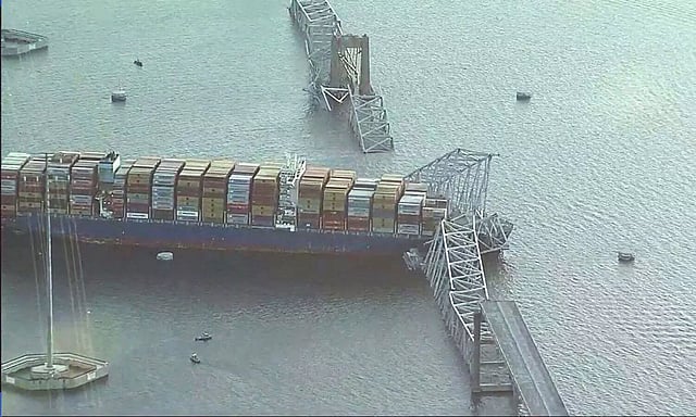 BALTIMORE: A cargo ship lost power and rammed into a major bridge in Baltimore early Tuesday, destroying the span in a matter of seconds and plunging it into the river in a terrifying collapse that could disrupt a vital shipping port for months. Six people were missing.