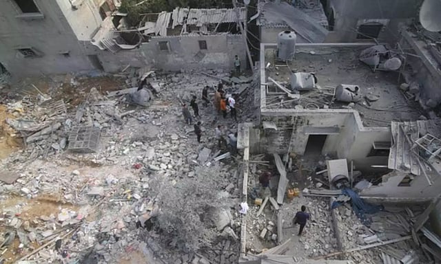 Dozens of Israeli fighter jets struck more than 200 targets in Gaza's densely populated Rimal and Khan Yunis neighbourhoods overnight, the military said.