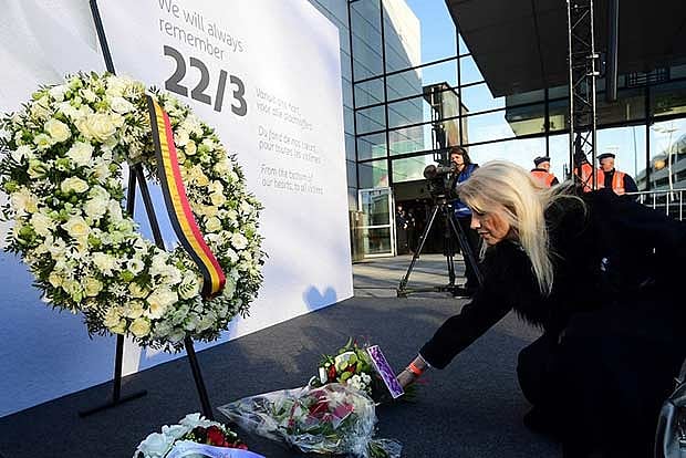 A sombre King Philippe and Queen Mathilde, along with Belgian Prime Minister Charles Michel and other ministers, lined up quietly outside the renovated Zaventem Airport to mark the exact time when two suicide bombers killed 16 people and wounded many more at the site.