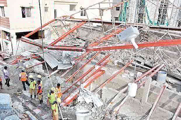He said emergency officers were searching for any other people who might be trapped under the debris. The official said all construction workers at the building site evacuated before its collapse. An earlier fire agency statement said the debris fell on two passenger vehicles. But agency officials later corrected that analysis after watching security video footage.