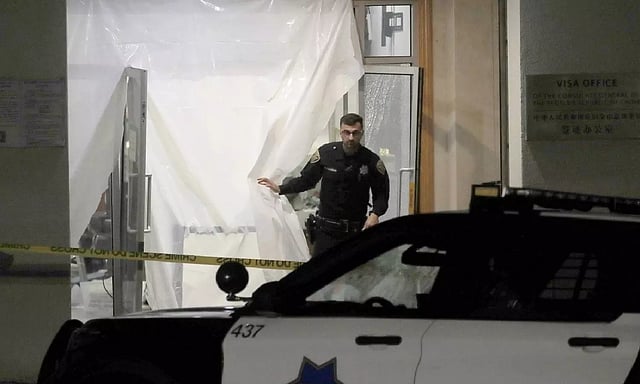 The San Francisco consulate has been targeted a number of times before. Among the most serious was a fire set by a Chinese man on New Year’s Day 2014 at the main entrance. It charred a section of the outside of the building.