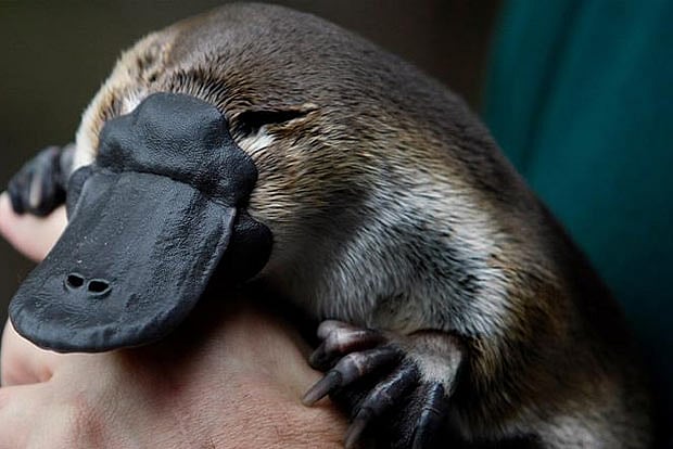 The platypus, which along with four species of echidna are the only mammals that lay eggs, is one of the world's strangest animals, with the bill of a duck, tail of a beaver, otter-like feet and a venomous spur on its hind leg.