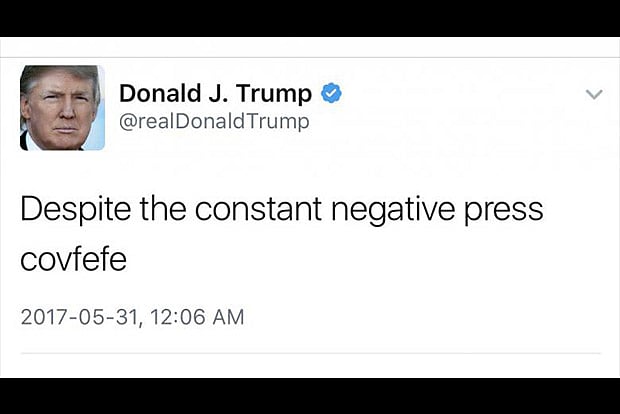Trump famously sent a tweet at 12:06 am ET (0406 GMT) on May 31 that said: "Despite the constant negative press covfefe." The message remained on the internet for hours, spurring a wave of speculation about what Trump intended to say.